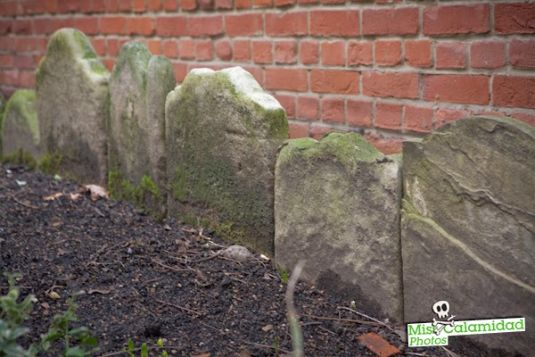 Losas en el antiguo camposanto del Monasterio de Cristo apoyadas contra los muros de la General Post Office.